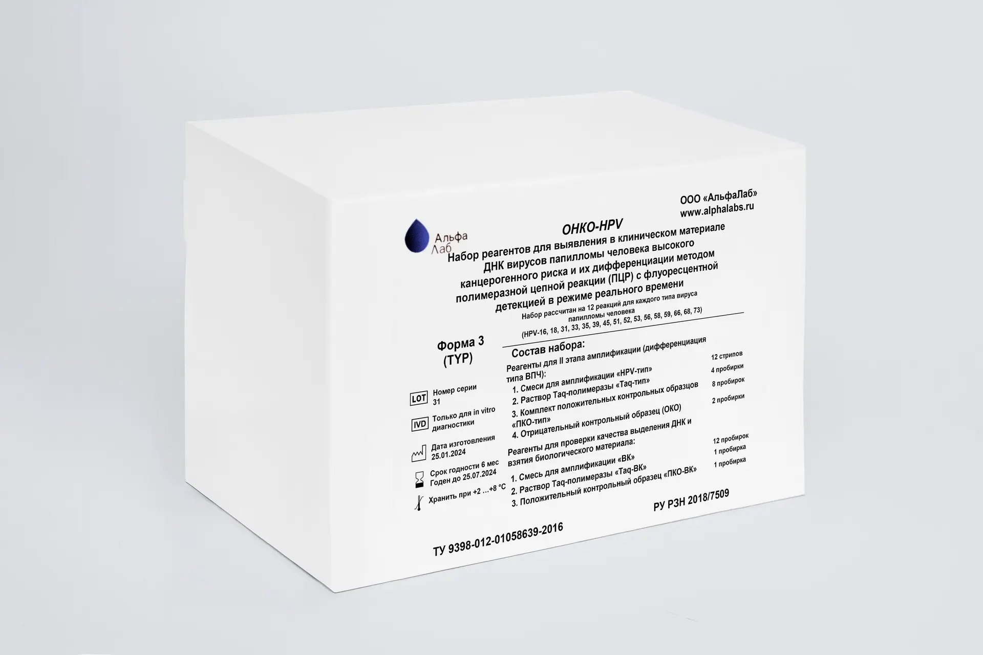Набор реагентов «Онко‑HPV» предназначен для качественного обнаружения в образцах биоматериала человека ДНК вирусов папилломы (ВПЧ) высокого канцерогенного риска и их дифференциации методом полимеразной цепной реакции (ПЦР) с флуоресцентной детекцией в режиме реального времени.